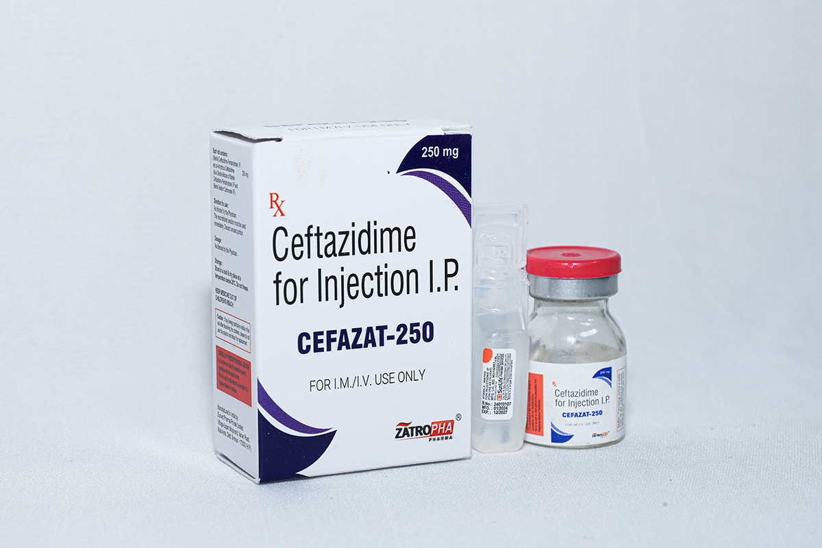 Cefazat-250 contains Ceftazidime, a third-generation cephalosporin antibiotic used for treating severe respiratory infections, UTIs, bone infections, brain infections, and ICU infections.