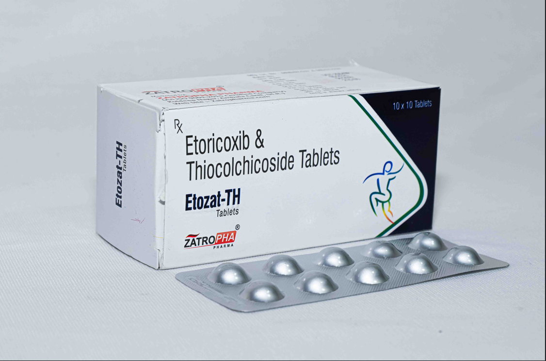 Etozat-Th contains Etoricoxib 60mg and Thiocolchicoside 4mg, a powerful combination for treating severe muscular pain, spasms, and inflammatory conditions. It is ideal for cervical spondylosis, lower back pain, sciatica, muscle stiffness, and joint inflammation. The dual-action formula reduces pain while relaxing tight muscles for faster mobility.