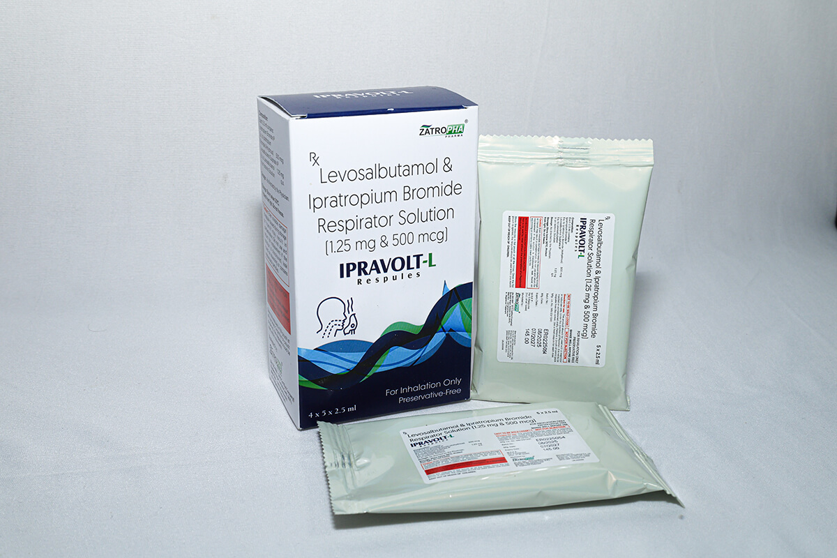 Ipravolt-L contains Levosalbutamol 1.25mg and Ipratropium Bromide 500mcg in a 2ml suspension. This combination offers strong bronchodilation for asthma, COPD, and severe breathing difficulty.