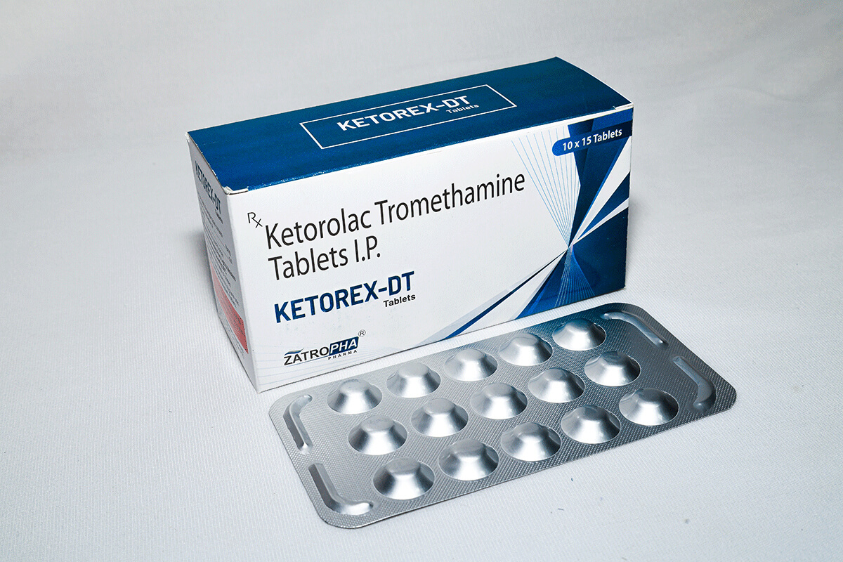 Ketorex-DT contains Ketorolac Tromethamine 10mg in a dispersible tablet, offering fast and powerful pain relief. It is used for postoperative pain, dental pain, musculoskeletal injuries, and acute moderate to severe pain episodes.