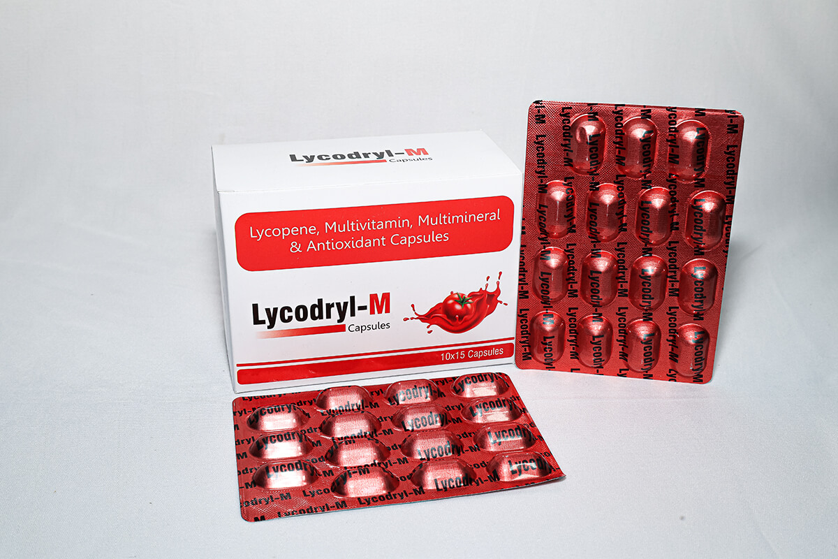 Lycodryl-M is a premium antioxidant supplement containing Lycopene, Methylcobalamin, Niacinamide, Folic Acid, Multivitamins, and Multiminerals. It supports immunity, improves energy levels, and enhances overall vitality.
