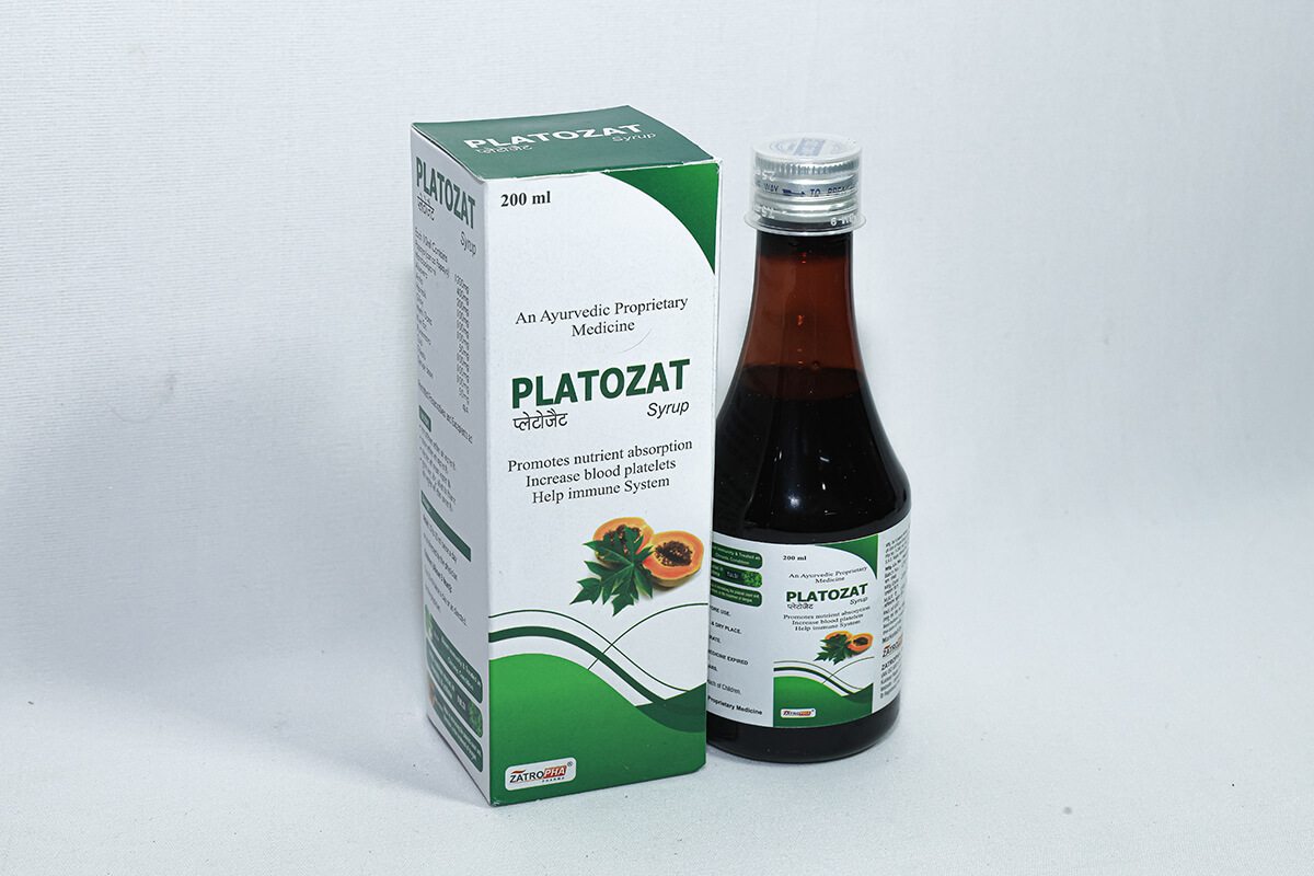 Platozat syrup is a herbal immunity and platelet booster containing Papaya Leaf and Giloy extracts. It supports recovery in viral infections and improves body resistance.