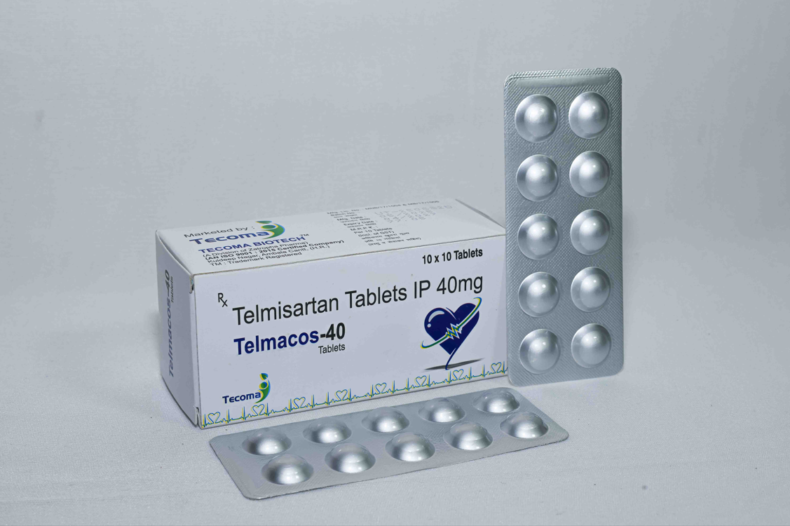Telmacos-40 contains Telmisartan 40mg, an angiotensin receptor blocker (ARB) used to manage high blood pressure and protect the heart and kidneys.