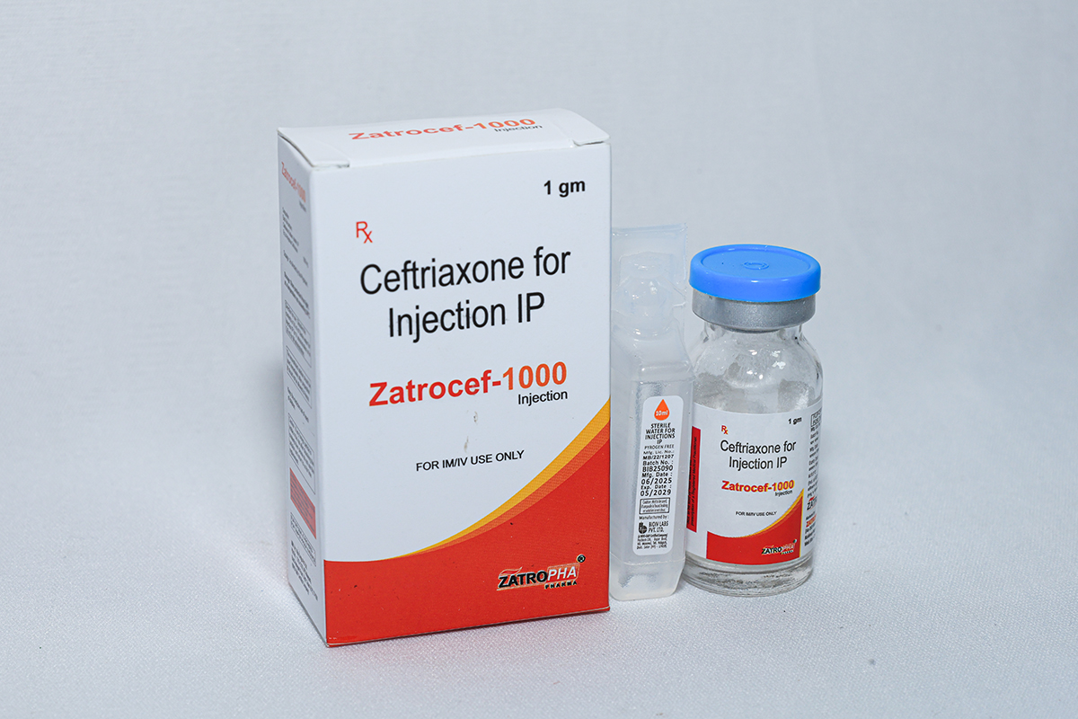 Zatrocef-1000 contains Ceftriaxone, a broad-spectrum antibiotic used in pneumonia, meningitis, urinary infections, abdominal infections, septicemia, and severe bacterial infections.