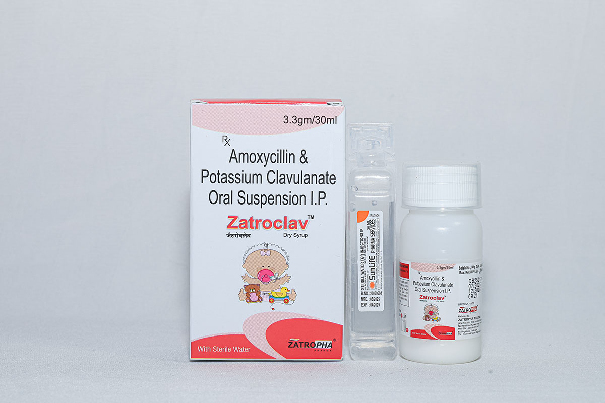Zatroclav Dry Syrup treats throat infections, pneumonia, skin infections, tonsillitis, and ear infections caused by resistant bacterial strains.