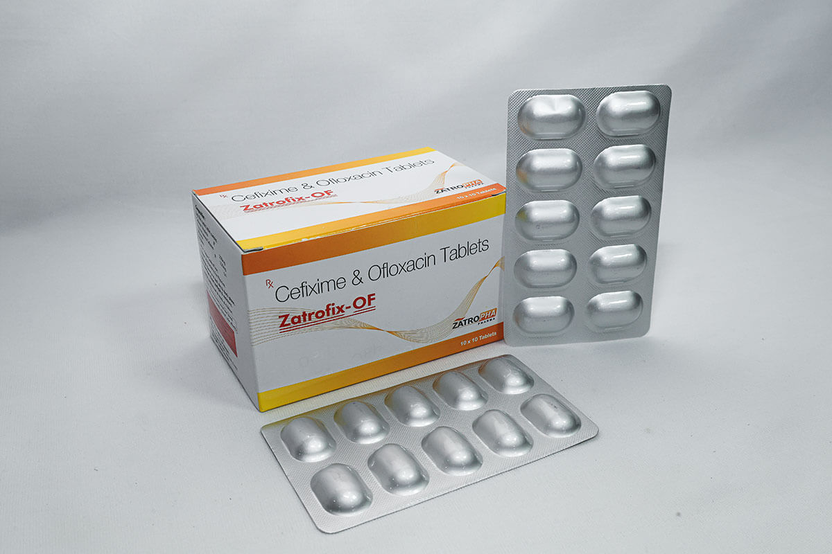 Zatrofix-OF contains Cefixime 200mg and Ofloxacin 200mg, providing a dual-action approach for treating resistant and complicated infections. This combination targets both gram-positive and gram-negative bacteria, making it effective for abdominal infections, typhoid fever, respiratory infections, and urinary tract infections.