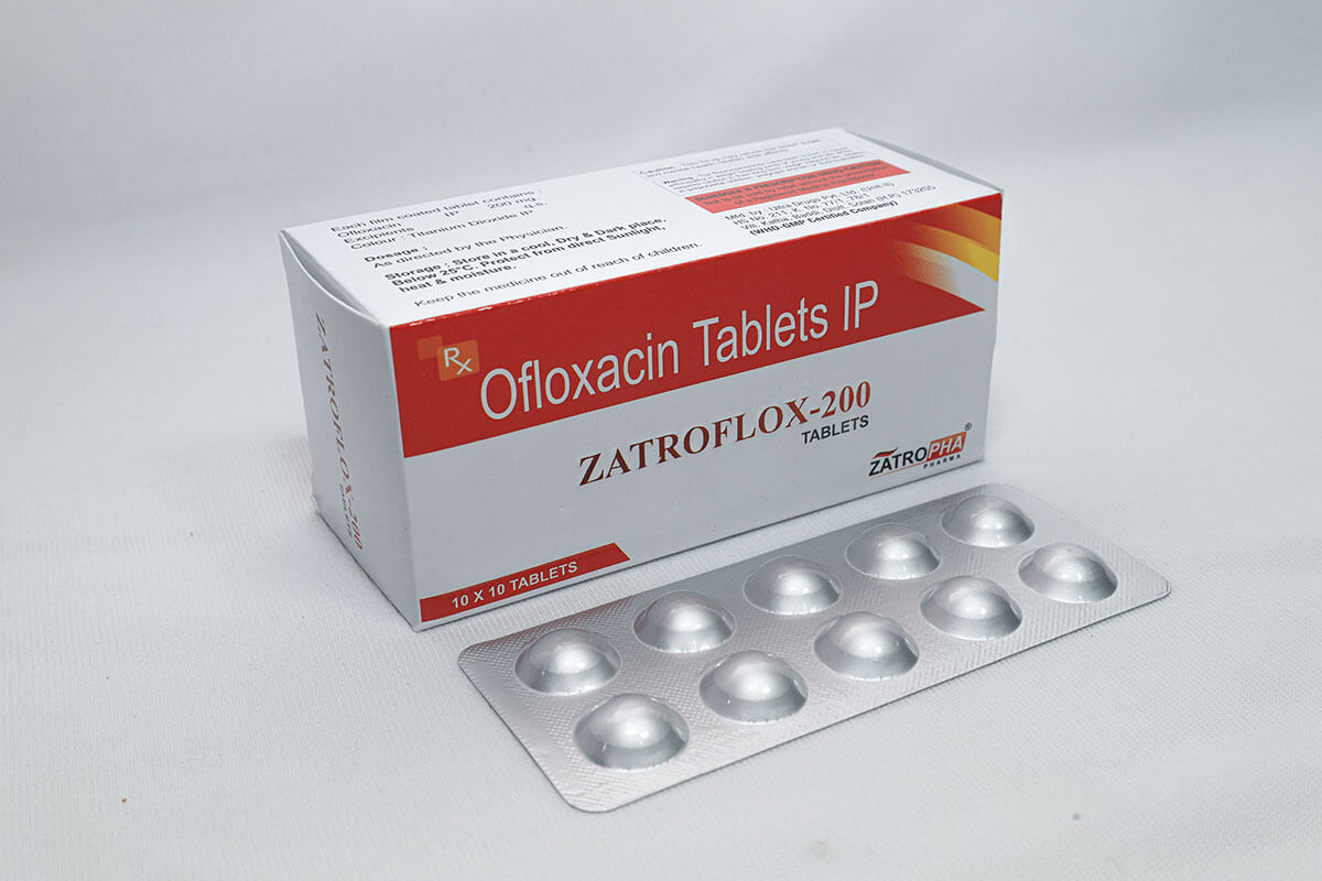 Zatroflox-200 contains Ofloxacin 200mg, a potent fluoroquinolone antibiotic used in respiratory infections, UTIs, skin infections, and gastrointestinal infections. It inhibits bacterial DNA synthesis, ensuring fast and effective bacterial killing. The medication is widely prescribed for acute and chronic infections due to its high oral absorption and rapid action.