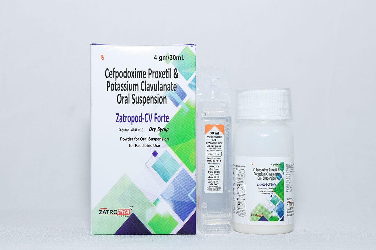 Zatropod-CV Forte is a high-strength formulation used in severe respiratory infections, sinusitis, tonsillitis, pneumonia, and chronic ear infections in children.