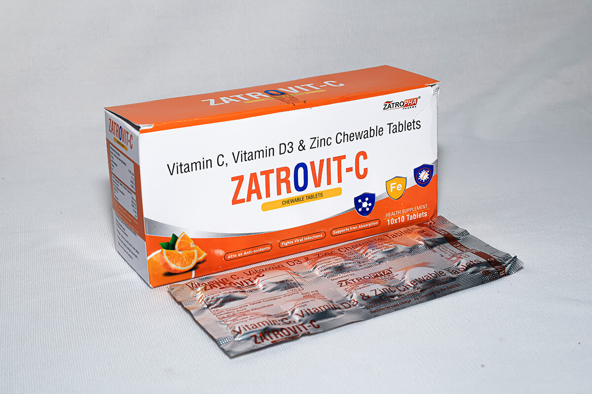 Zatrovit-C contains Vitamin C, Vitamin D3, and Zinc to support strong immunity, enhance recovery from infections, and improve antioxidant defense. It is ideal for daily supplementation, boosting overall health, skin glow, and resistance to seasonal illnesses.