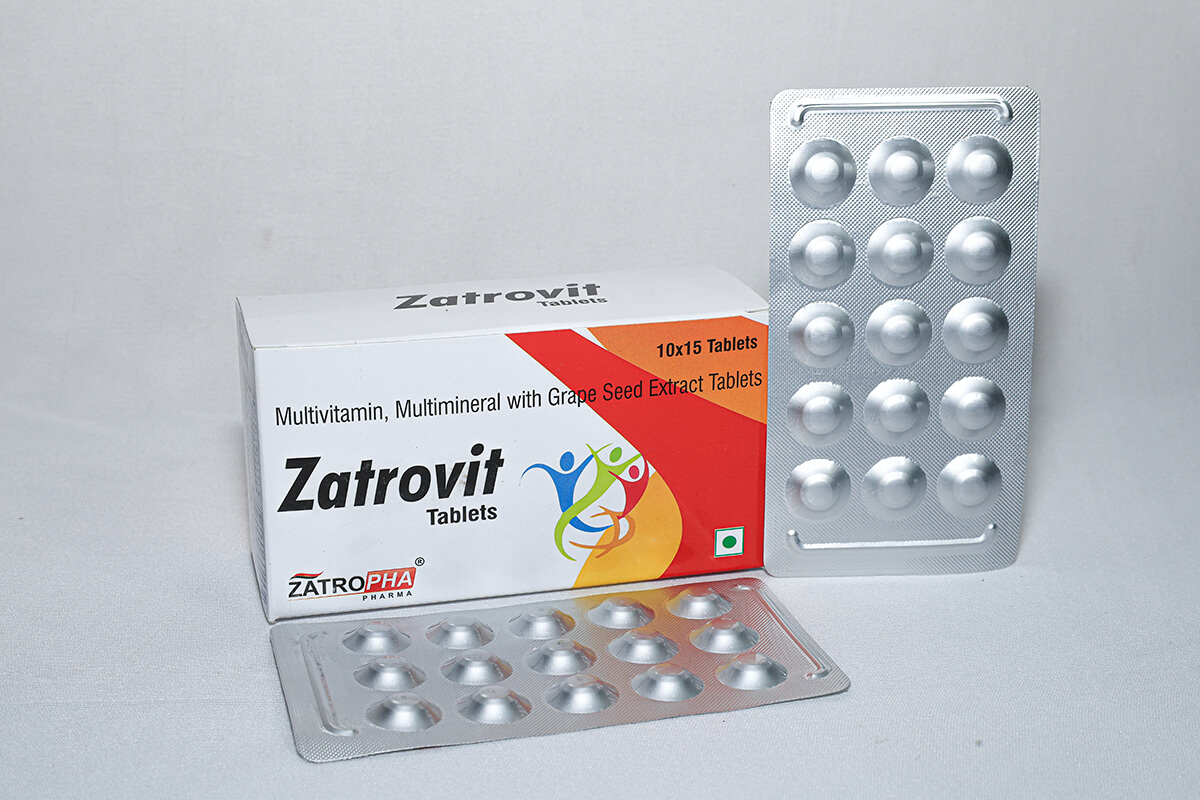 Zatrovit Tabs contain essential vitamins, minerals, and Grape Seed Extract. It boosts immunity, improves skin health, reduces stress, and enhances metabolic functions.